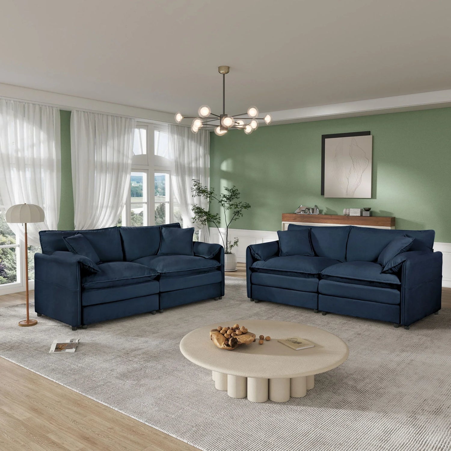Modern Chenille Oversized Deep Seat Luxury 2 Piece Sofa Set With 4 Pillows