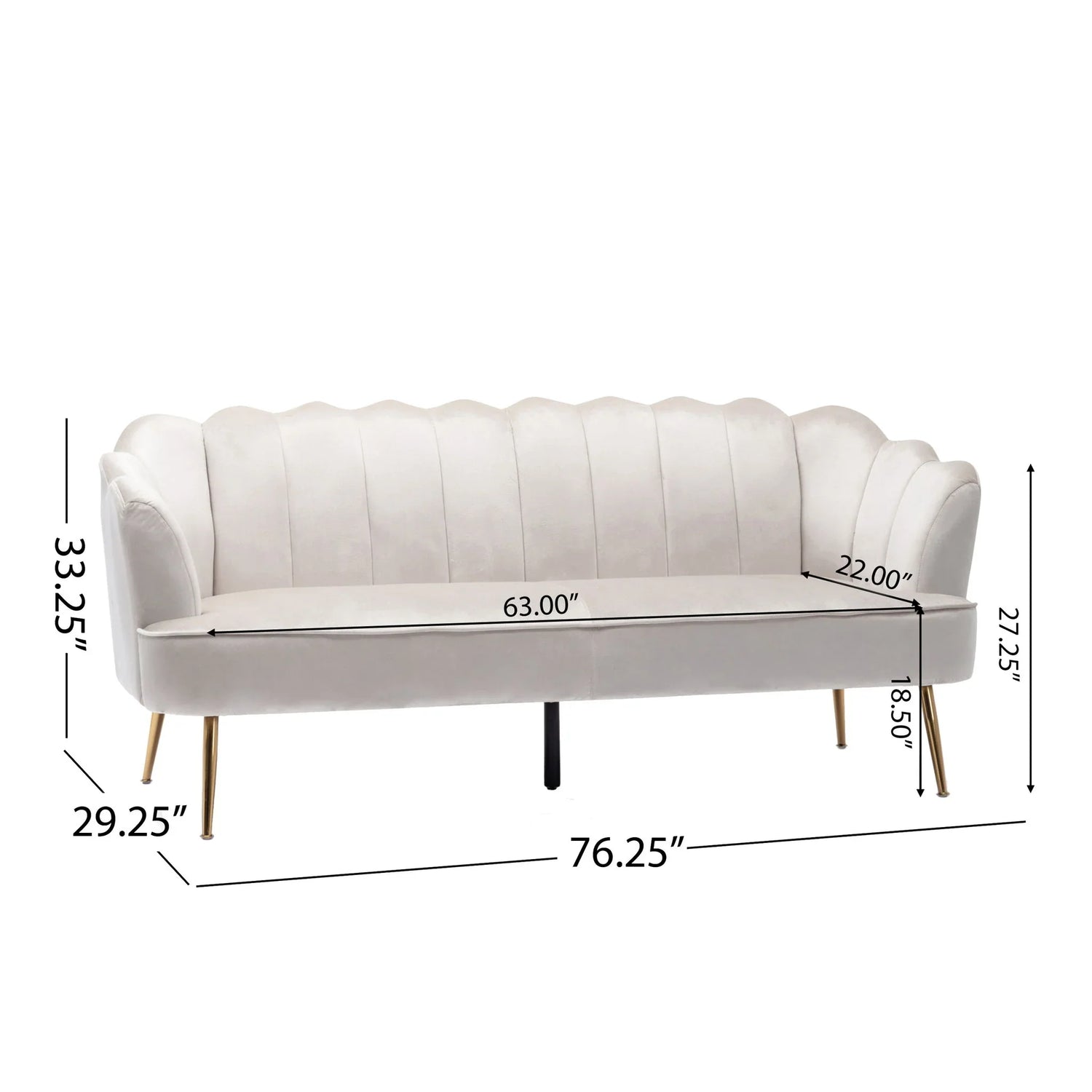Modern Glam 3 Seater Sofa With Velvet Texture And Iron Legs - Beige