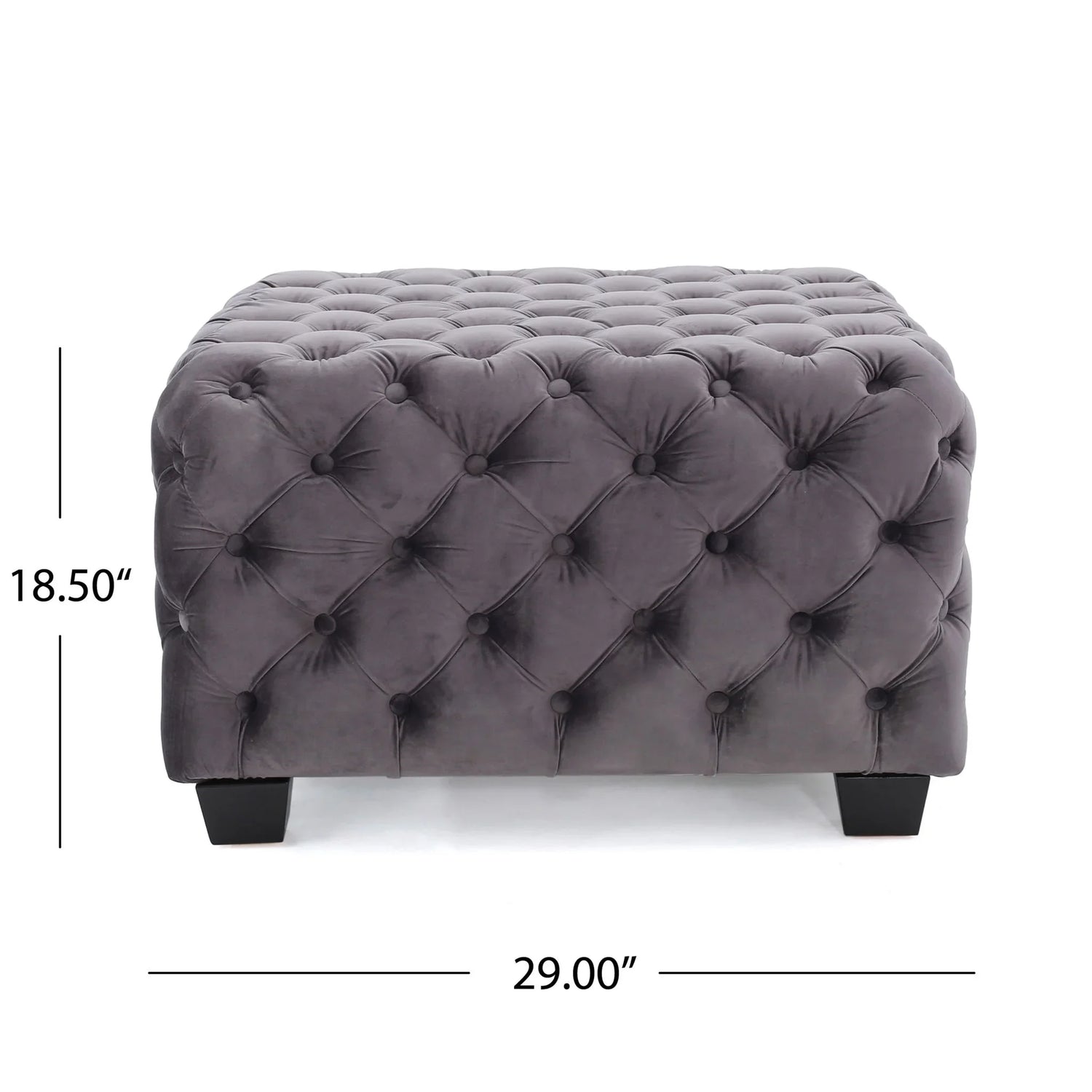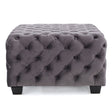 Modern Glam Velvet Ottoman With Button Tufted Diamond Stitch Design - Gray