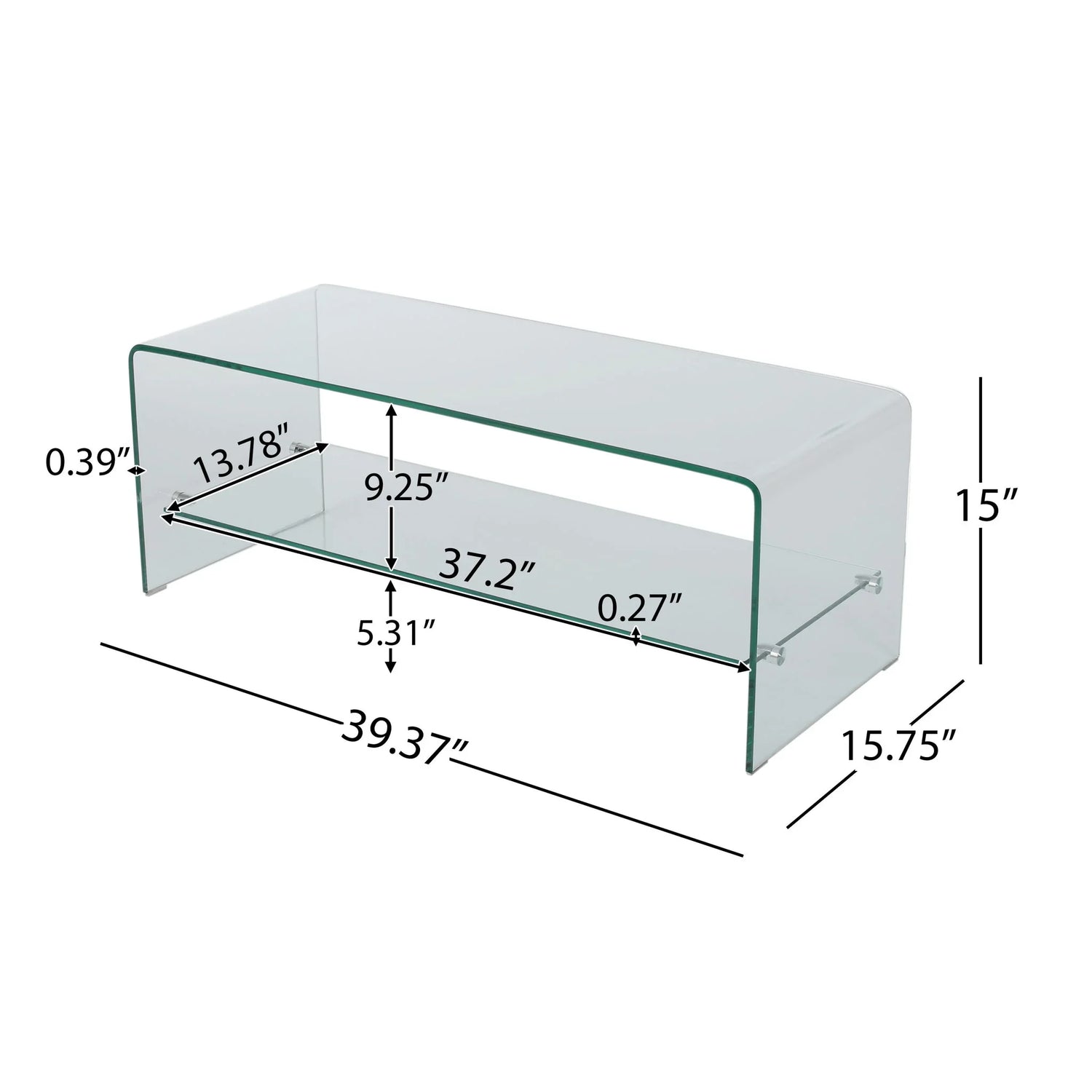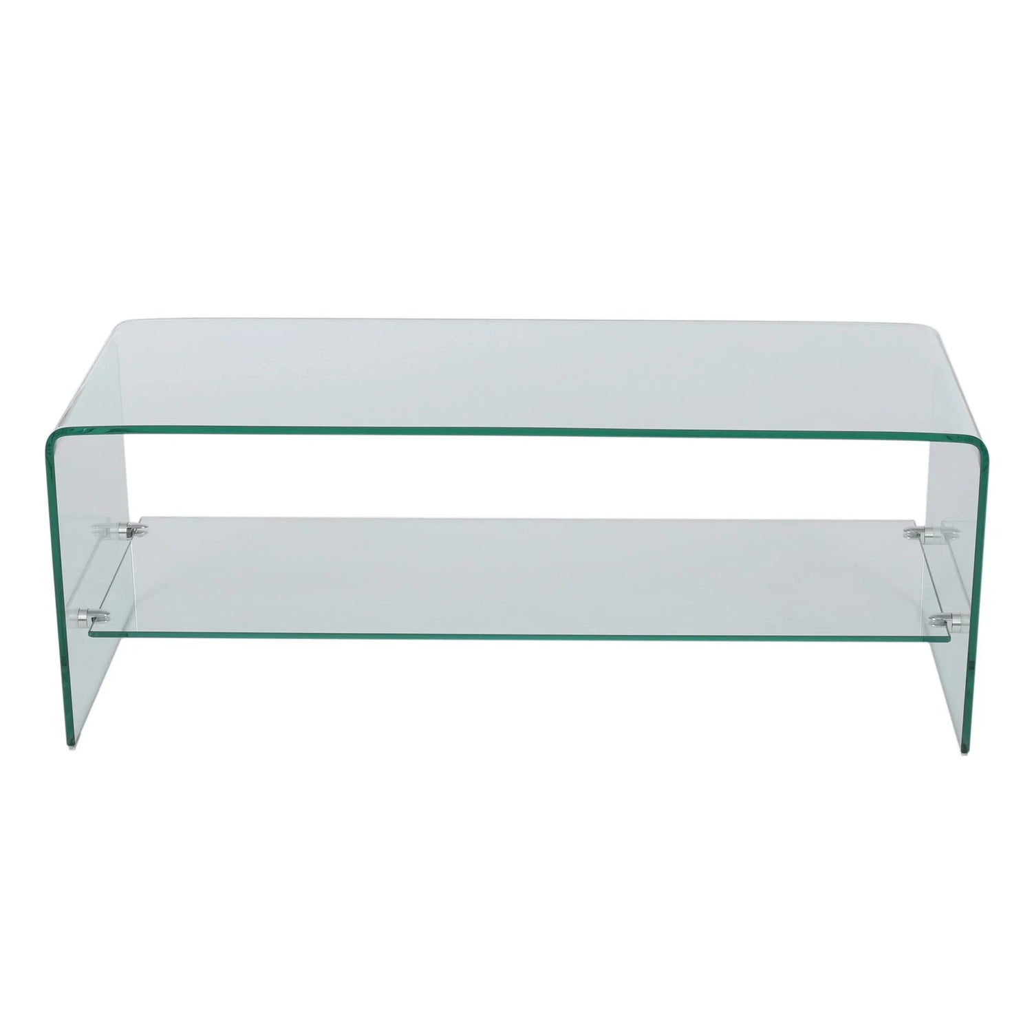 Modern Tempered Glass TV Stand With Shelf And Open Back Design - Clear
