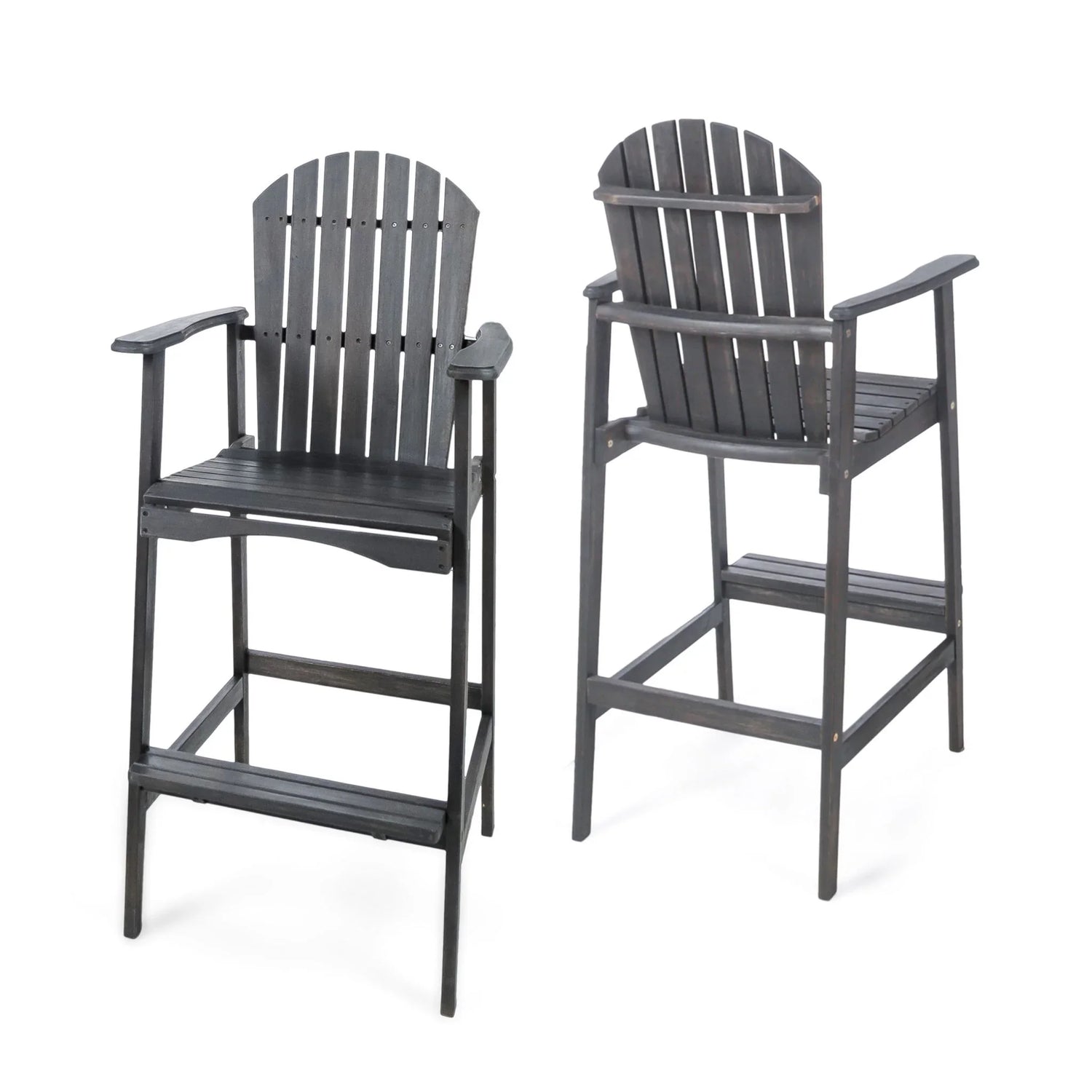 Outdoor Acacia Wood Adirondack Barstools (Set of 2) - Natural Stained - Dark Gray