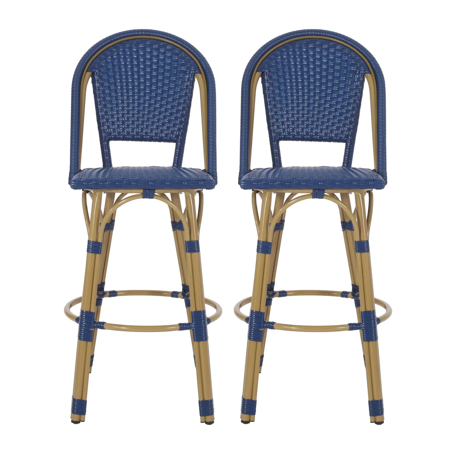 Outdoor Rattan And Aluminum French Barstools Set - Navy Blue