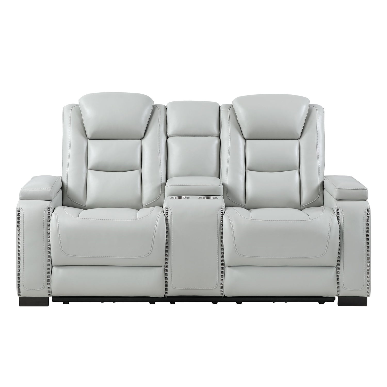 Power Console Loveseat With Power Headrest USB LED And Bookshelf Arms - Grey is backordered and will ship as soon as it is back in stock.