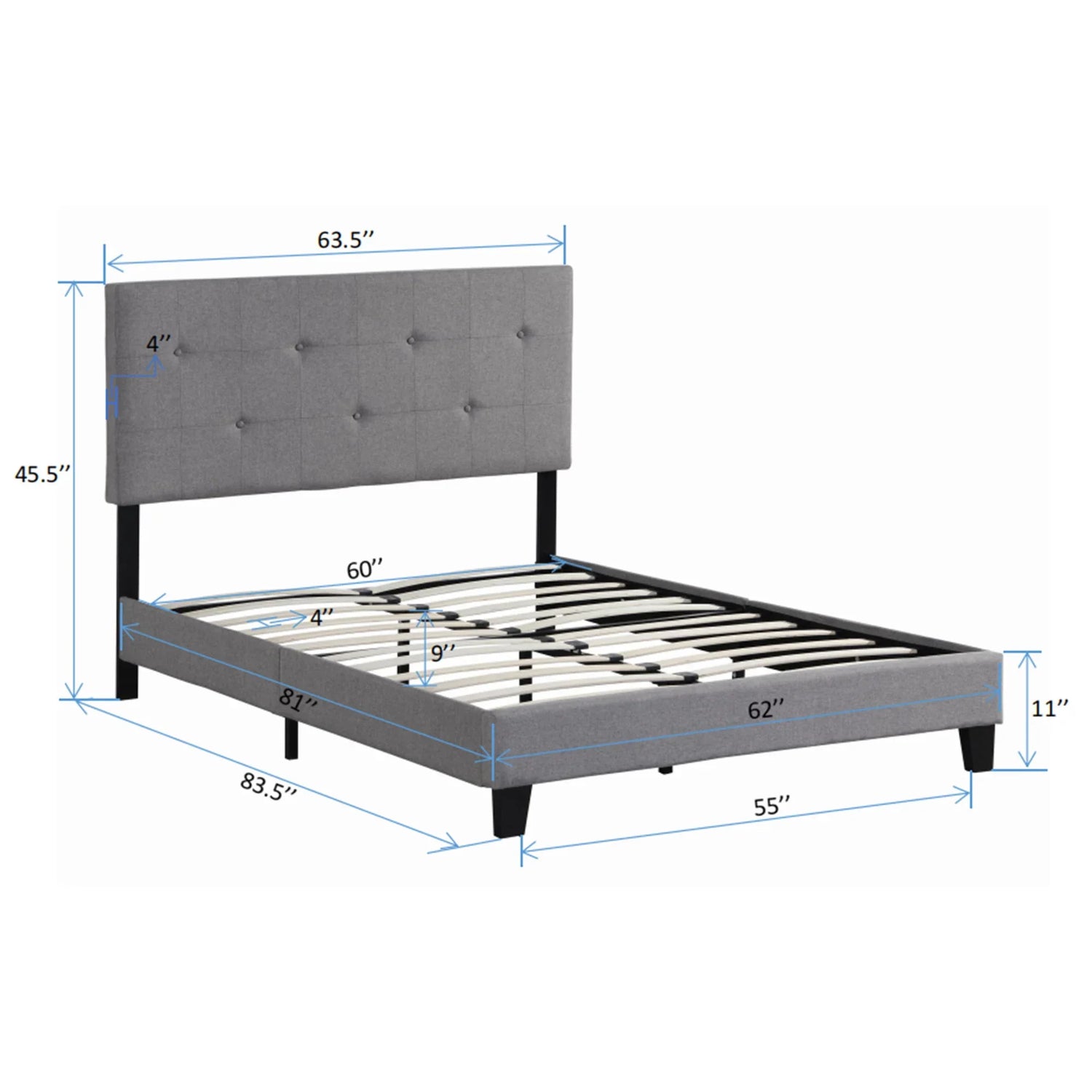 Clean, modern and easy to live with, this queen-size upholstered platform bed is designed for anyone who wants a stylish bedroom upgrade without extra fuss. The low-profile frame and button-tufted linen headboard give a tailored, contemporary look that fits apartments, guest rooms, and master bedrooms alike. It pairs neatly with a range of mattress types and décor styles—from Scandinavian-minimal to soft modern.