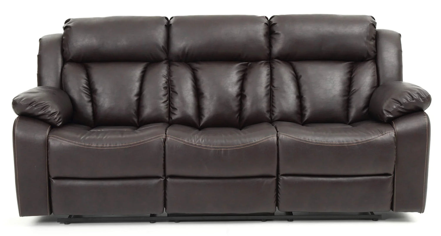 A roomy, casually elegant reclining sofa designed for everyday lounging in a modern living room. This three-seat recliner suits households that want plush, supportive seating for movie nights, relaxed conversations, or weekend naps — especially in medium to large living spaces where a full recline is welcome. The design reads contemporary with generous cushioning, a channel‑stitched back and padded arms that visually invite you to sit back and stay a while.