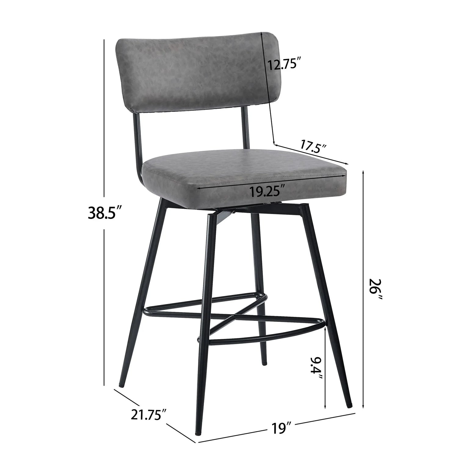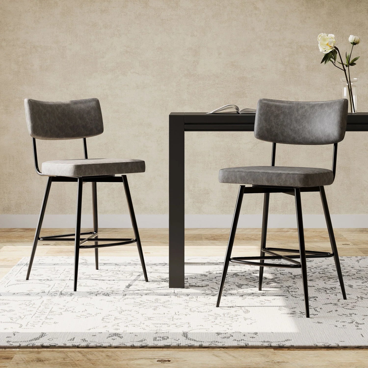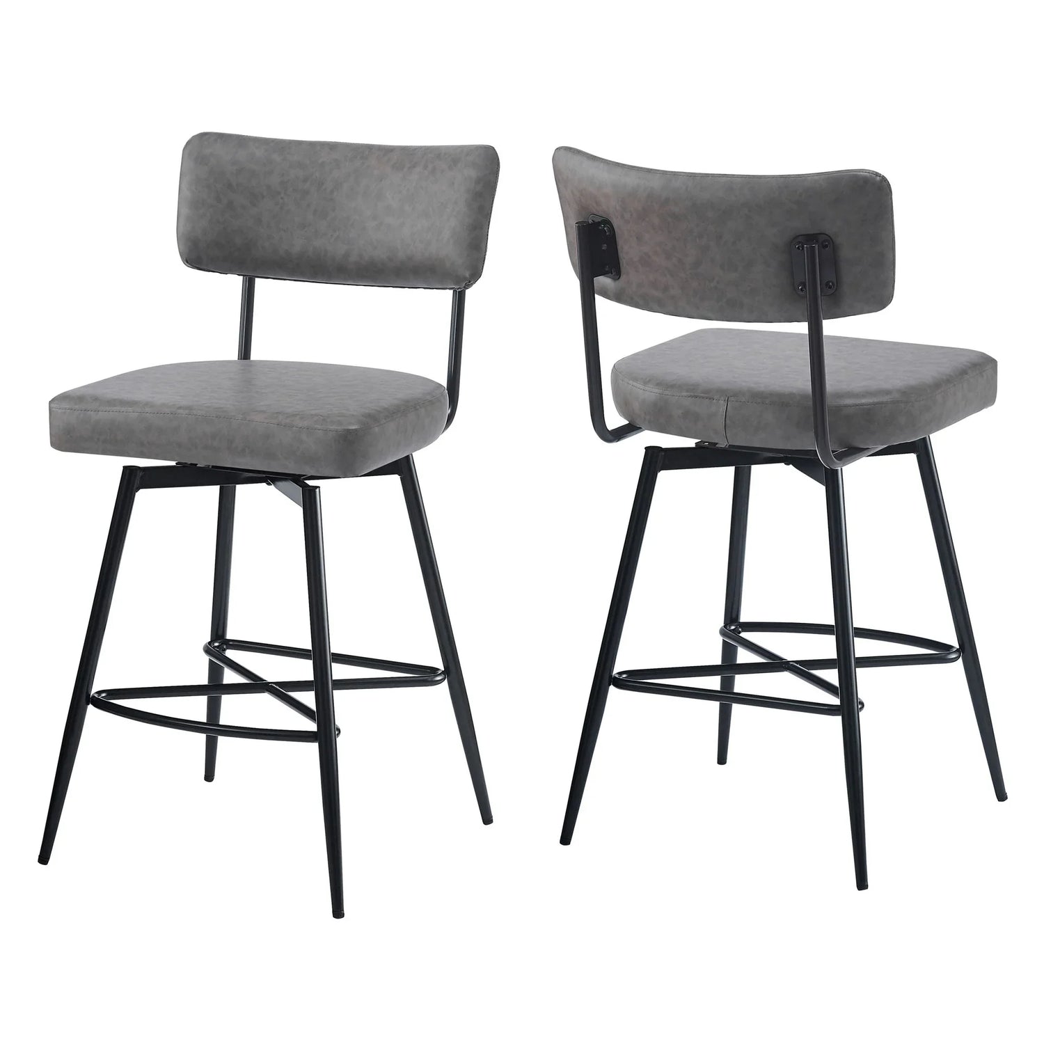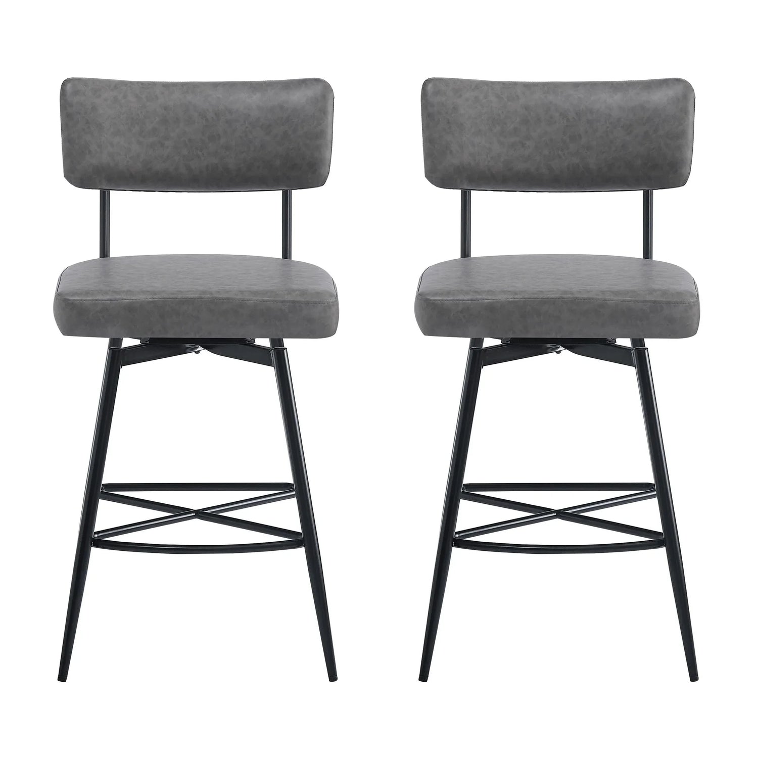 Retro Swivel Counter Stools (Set of 2) Counter Stools With Iron Frame, Sponge Cushion, Footrest, Suitable For Kitchen - Gray