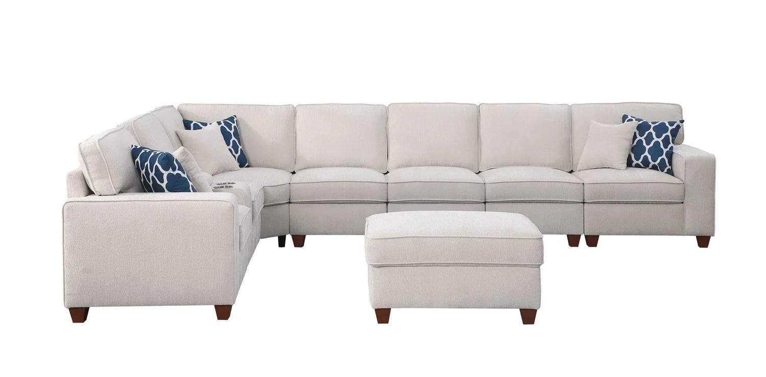 Ted - Sectional Sofa With Ottoman - Beige