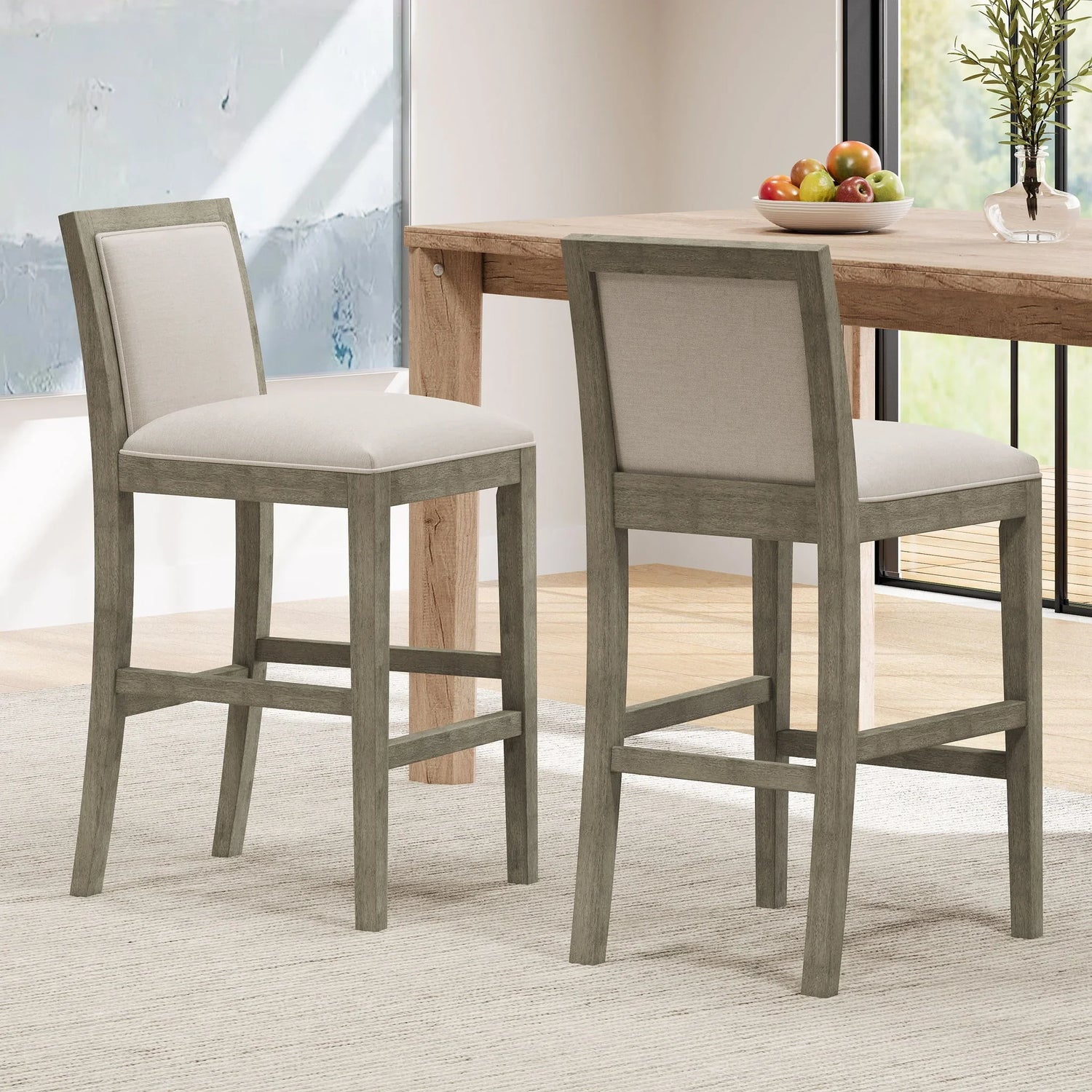 Bar Stools (Set of 2), Rubber Wood Frame, Retro Bar Chairs Suitable For Kitchen Island - Beige / Gray
