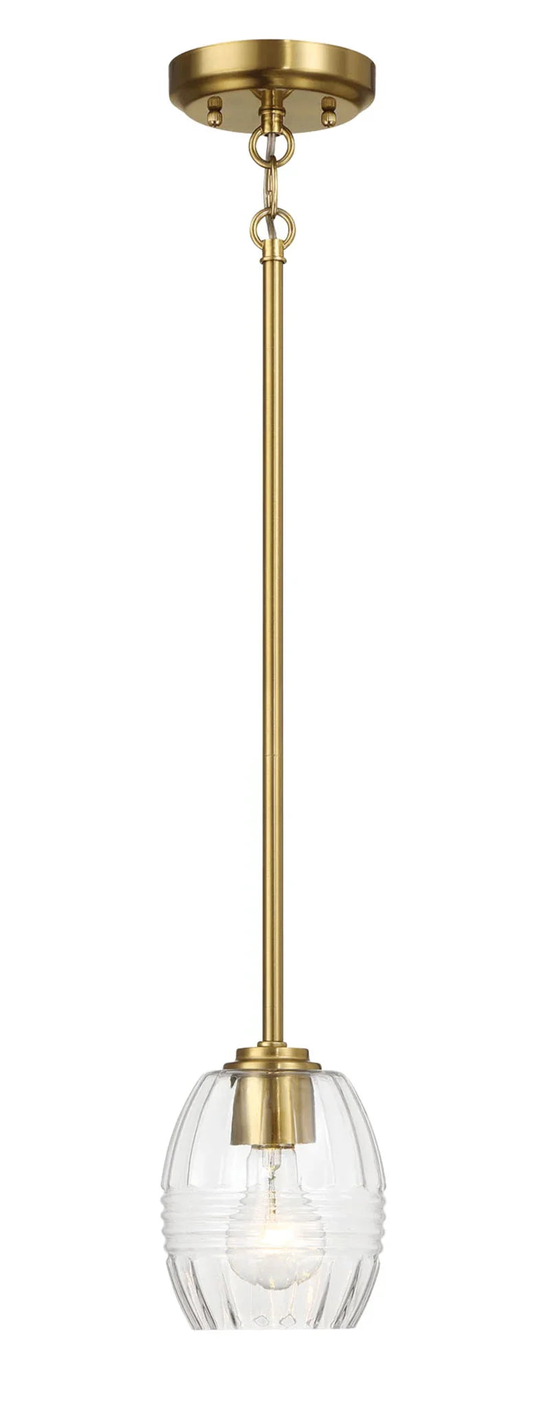 - Elegant Design: The Vista Single Pendant Chain Hanging Light features a clear glass shade and a satin brass finish, creating a stylish and sophisticated look that enhances any space.