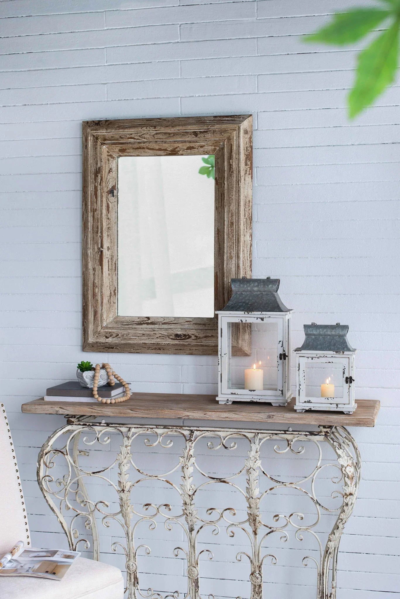 A relaxed, vintage accent for porches, mantels, entryways or event tables, this pair of wooden hurricane lanterns is made for shoppers who want effortless farmhouse charm with everyday versatility. The distressed white wood frames and clear glass panels create a soft, lived-in look that layers easily with linen, greenery or seasonal decor — ideal for homes that favor warm, casual styling.