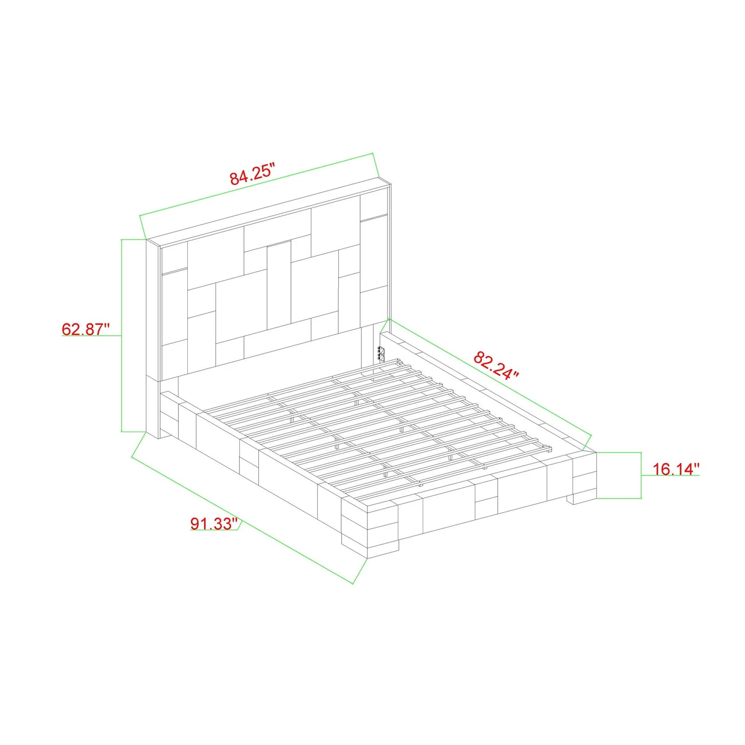 - Construction highlights: Fully upholstered headboard and platform base with block-style tufting detail visible on headboard and base.